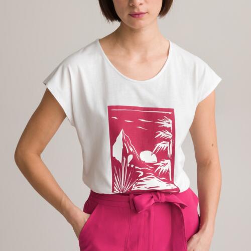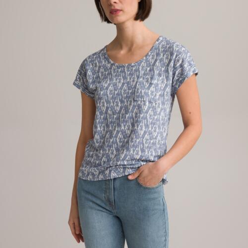 Printed Linen T-Shirt with Crew Neck and Short Sleeves Anne Weyburn £36.40 -