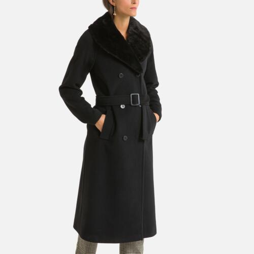 Wool Mix Double-Breasted Coat with Faux Fur Collar and Pockets Anne Weyburn £199.00 -