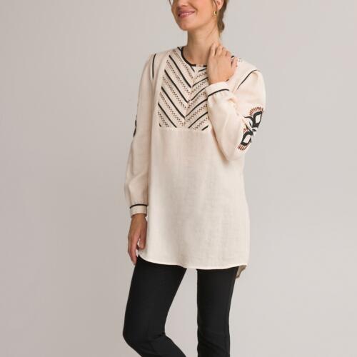 Embroidered Cotton Tunic with Crew Neck and Long Sleeves Anne Weyburn £29.25 -