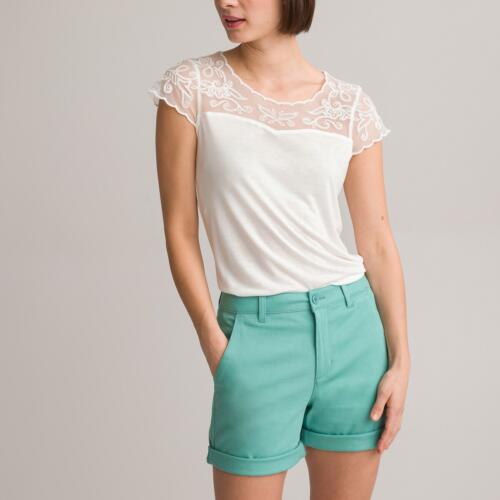 Cotton Mix T-Shirt in Lace with Crew Neck and 3/4 Length Sleeves Anne Weyburn £33.80 -