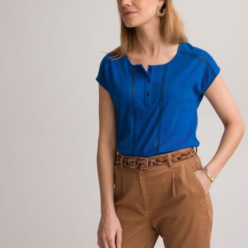 Cotton Grandad Collar T-Shirt with Short Sleeves Anne Weyburn £27.30 -