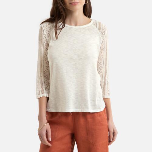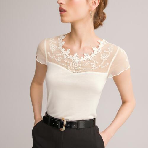Guipure Lace Detail T-Shirt with Crew Neck and Short Sleeves Anne Weyburn £24.00 -