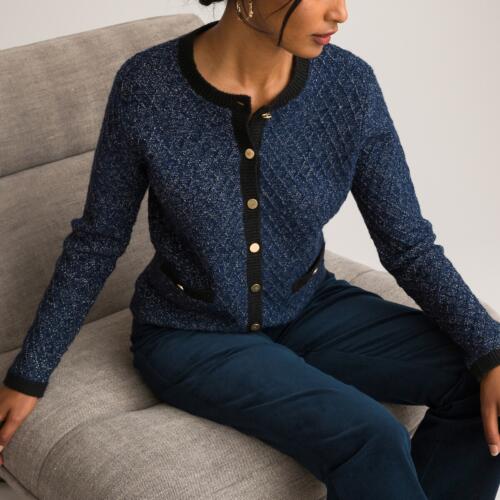 Buttoned Crew Neck Cardigan in Fine Knit Anne Weyburn £26.00 -