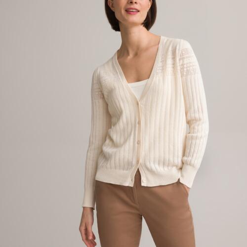 Linen/Cotton Pointelle Cardigan with Puff Sleeves Anne Weyburn £52.00 -
