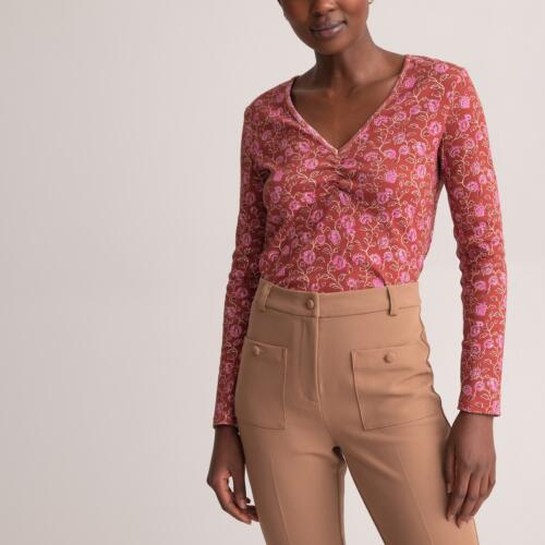 Floral Cotton T-Shirt with V-Neck and Long Sleeves Anne Weyburn £24.00 -