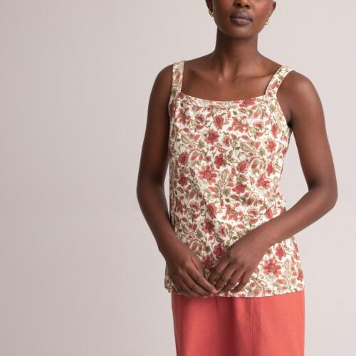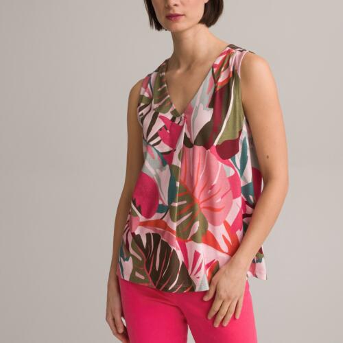 Printed Sleeveless Vest Top in Cotton Mix with V-Neck Anne Weyburn £21.00 -