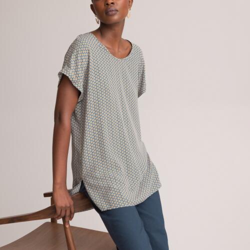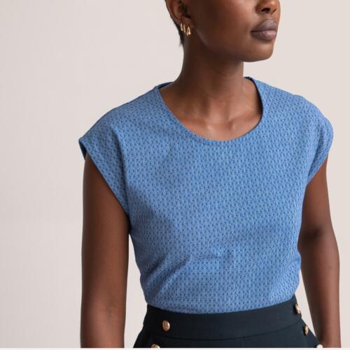 Printed Organic Cotton T-Shirt with Boat Neck and Short Sleeves Anne Weyburn £24.50 -