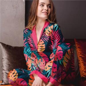 ‘Luna’ Leaf Print Long Satin Pyjama Set Averie Sleep -