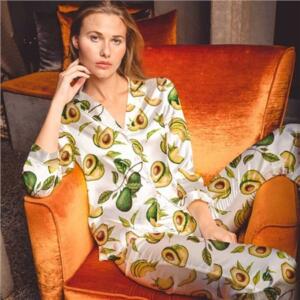 'Esperanza' Avocado Print Long Satin Pyjama Set Averie Sleep £135.00 -