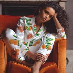 ‘Paloma’ Orange Print Long Satin Pyjama Set Averie Sleep £135.00