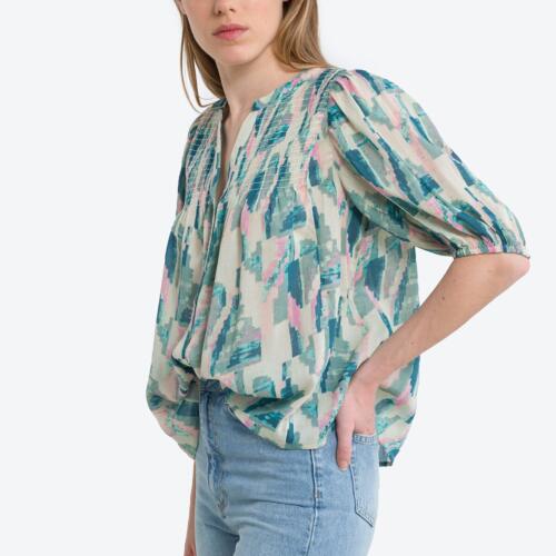 Ba&sh Teodor Printed Shirred Shirt in Cotton Mix with Short Puff Sleeves ba&sh £190.00 -