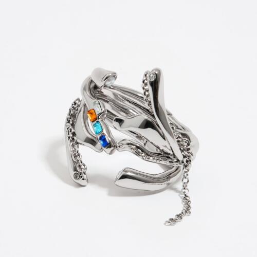 BIMBA Y LOLA Hinged silver-tone bracelet with texture, chains and crystals Bimba Y Lola -