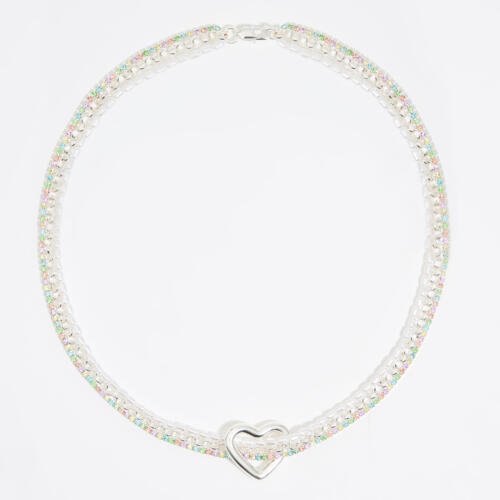 BIMBA Y LOLA Pearl multi-chain heart necklace with silver crystals Bimba Y Lola £65.00 -