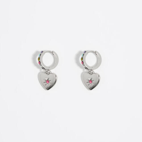BIMBA Y LOLA Silver mini hoop earrings with crystals and heart Bimba Y Lola £42.00 -