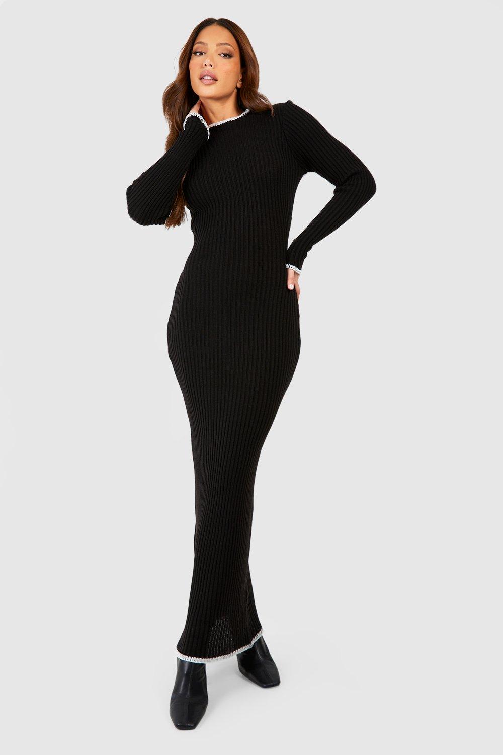 Womens Tall Contrast Whipstich Rib Knit Maxi Dress