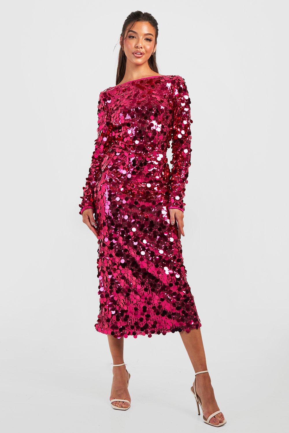 Womens Disc Sequin Scoop Back Midaxi Dress