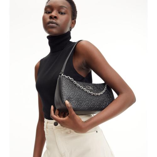 Embossed Monogram Baguette Bag in Cotton Mix Calvin Klein -