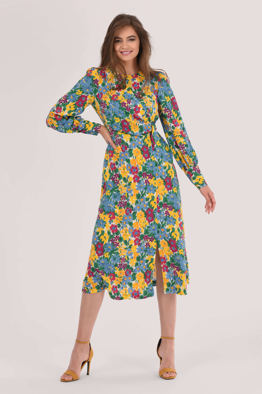 Multi Floral Puff Sleeve V-Neck Midi Dress Closet LondonSave 60%£37.99