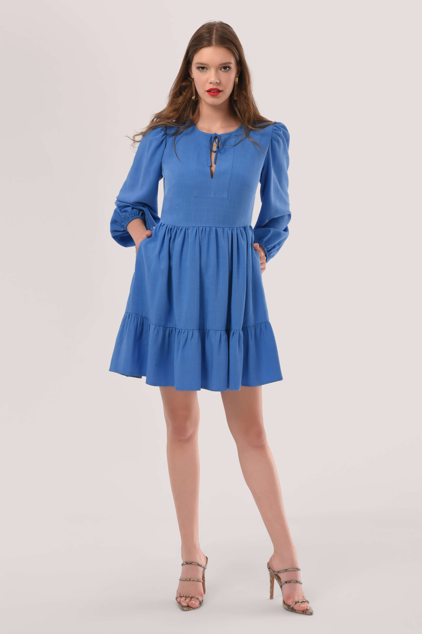 Blue Tie Back A-Line Puff Sleeve Midi Dress Closet LondonSave 65%£30.00