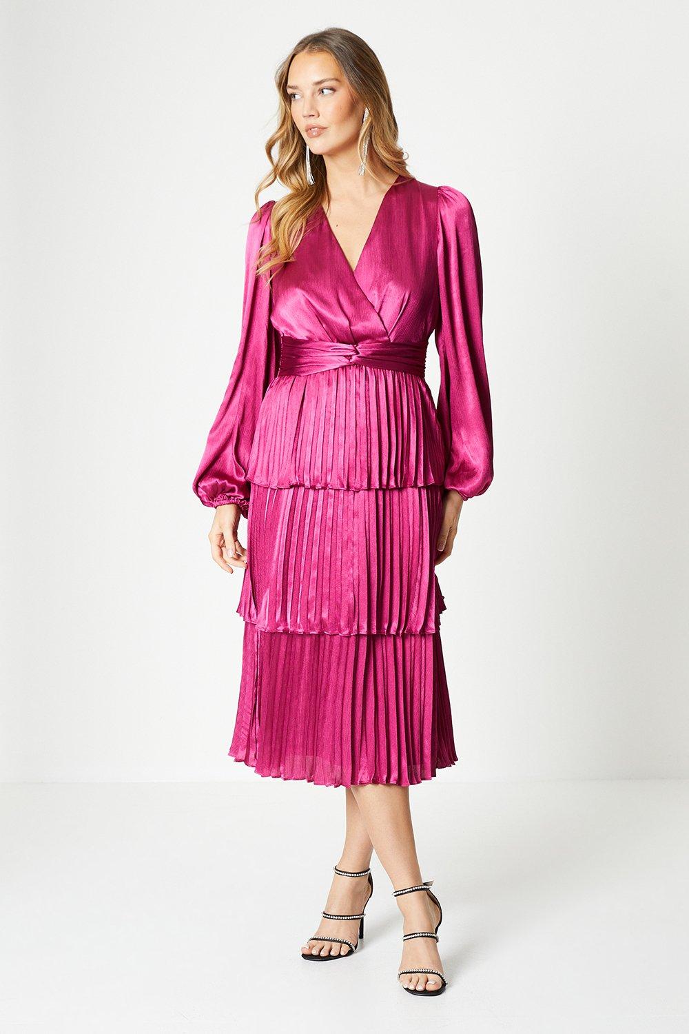 Metallic Tiered Skirt Wrap Front Midi Dress