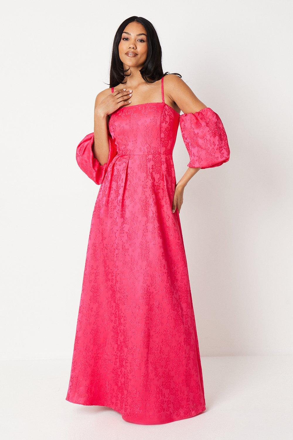 Satin Bodice Tulle Skirt Maxi Bridesmaids Dress
