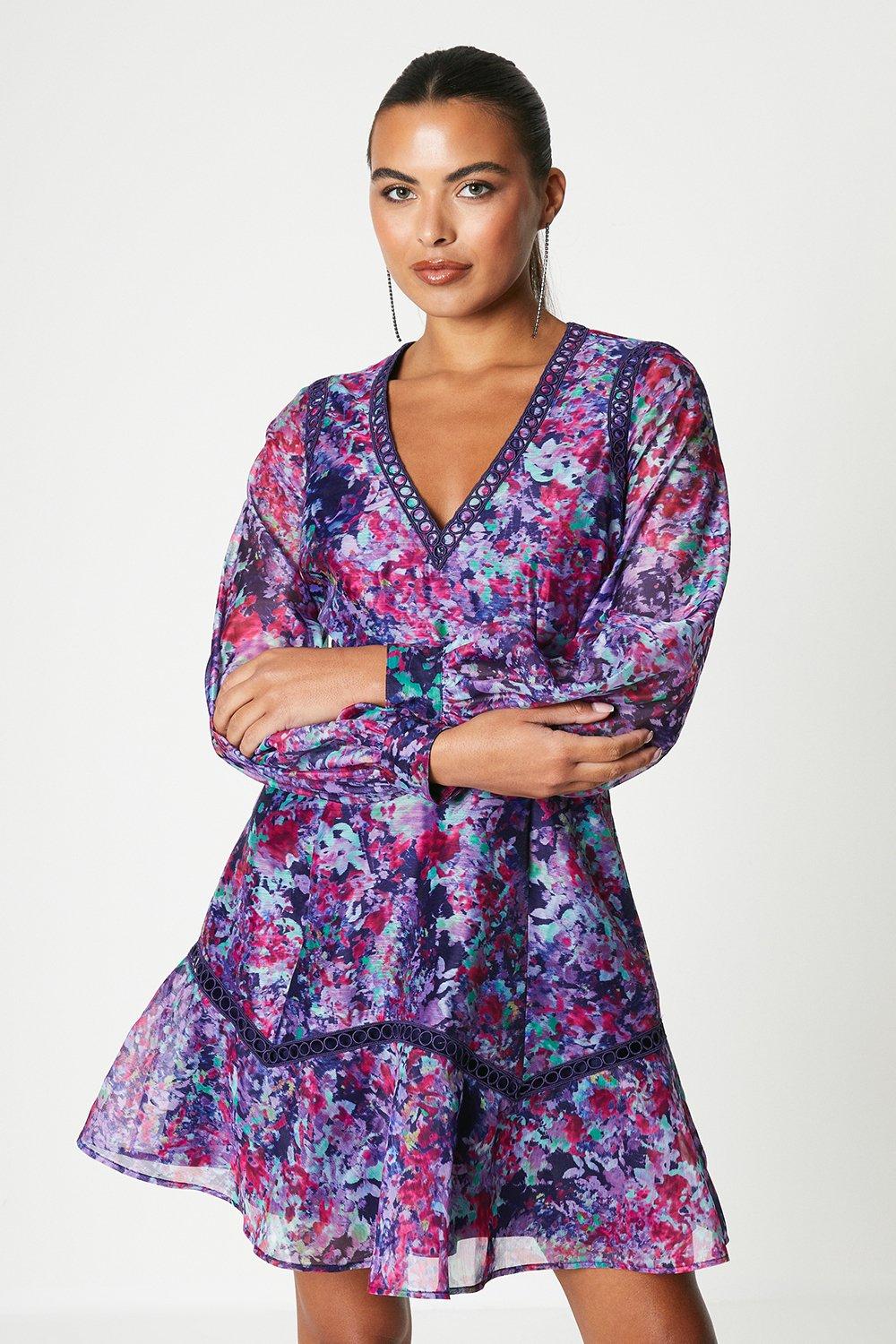 Floral Organza Mini Dress With Lace Trims