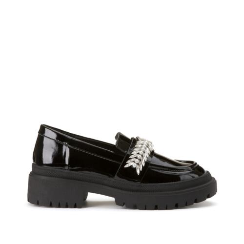 Henri Patent Leather Loafers with Jewelled Detail Cosmoparis £140.00 -