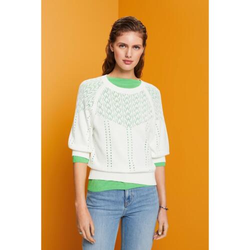 Cotton Pointelle Knit Jumper with 3/4 Length Sleeves and Crew Neck Esprit £37.50 -