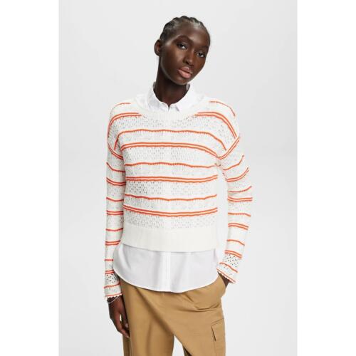 Striped Cotton Jumper in Openwork Knit with Crew Neck Esprit £37.50 -