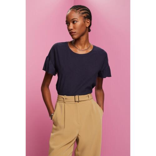 Cotton Mix T-Shirt with Short Ruffled Sleeves and Crew Neck Esprit £30.60 -