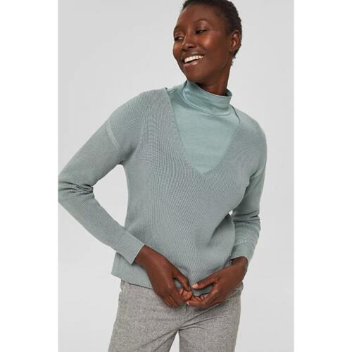 Cotton Ribbed Jumper with Large V-Neck Esprit £33.00 -