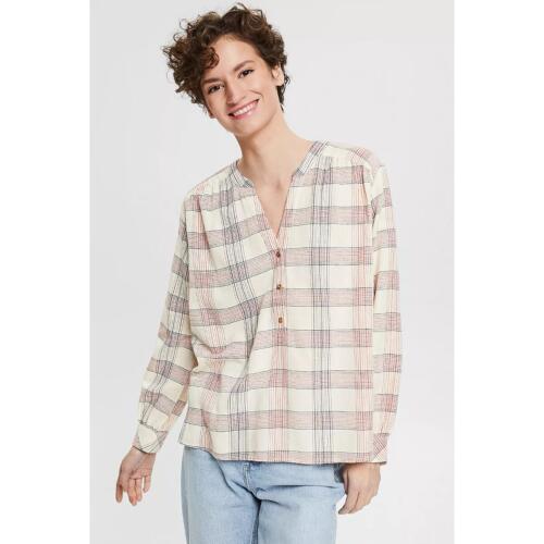 Checked Cotton Mix Shirt with Grandad Collar Esprit £39.00