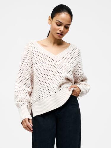 Crochet Knit V Neck Sweater Oatmeal French Connection £44.00 -