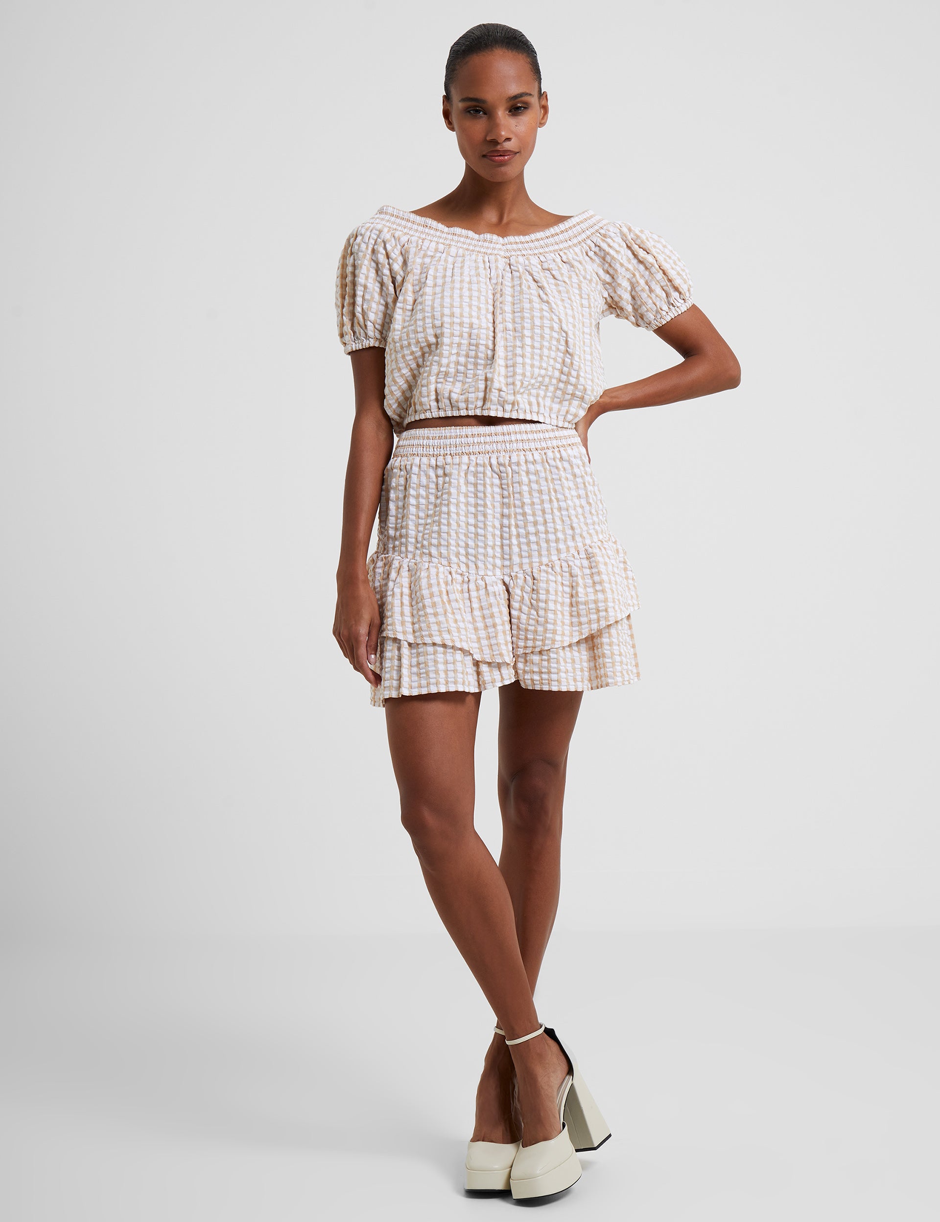 Filippa Poplin Gingham Ruffle Hem Mini Skirt Incense French Connection £20.00 -
