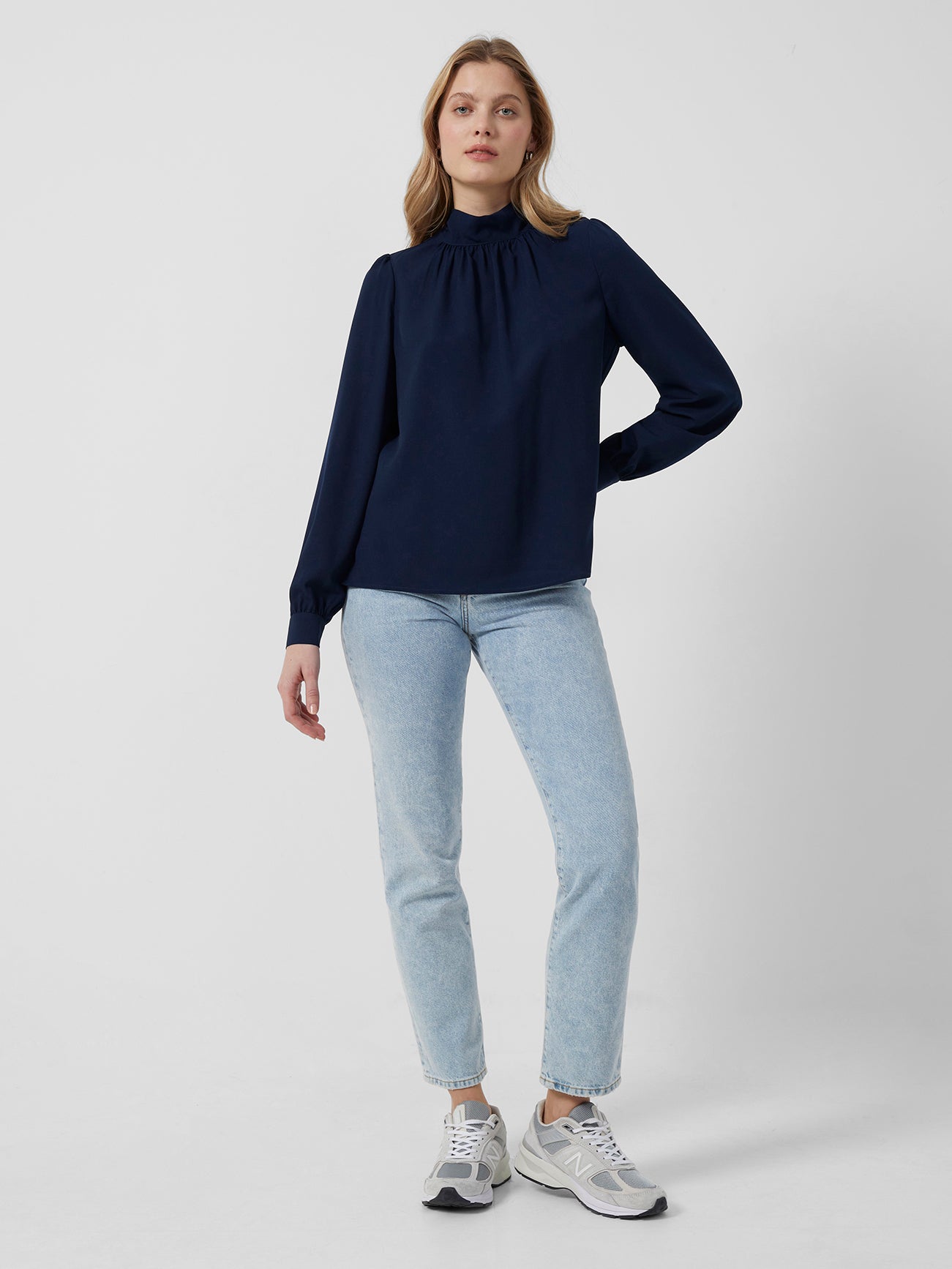 Arina Solid Button Neck Top Indigo French Connection £36.00 -