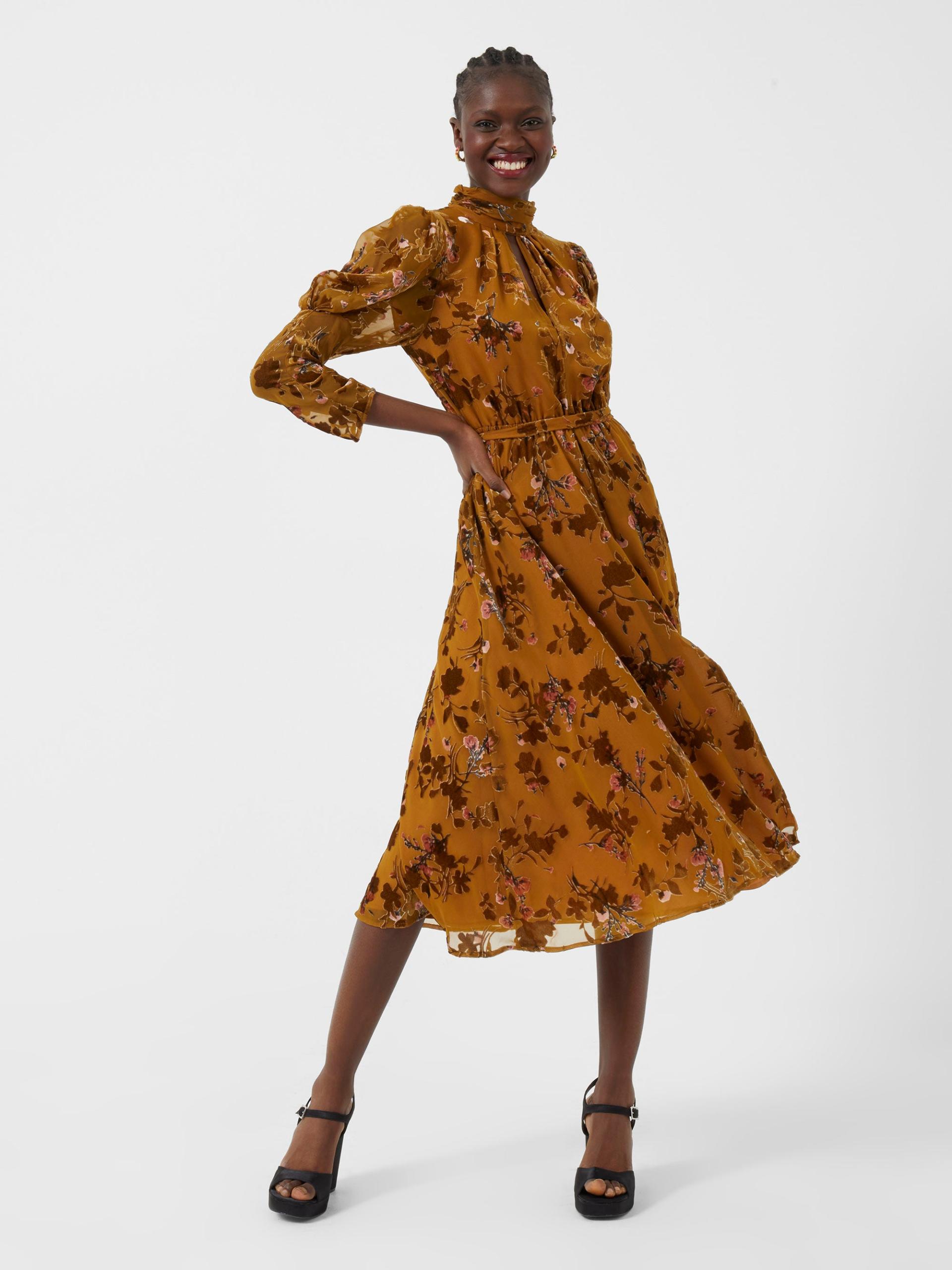 Guthern Burn Out Midi Dress Gold Brown French Connection £59.00 -