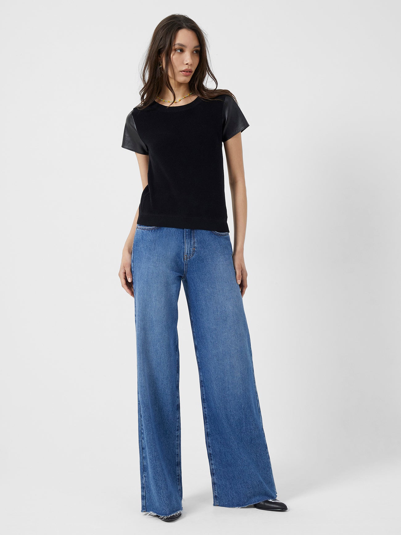 Mozart PU Knit Short Sleeve Top Black French Connection £14.00 -