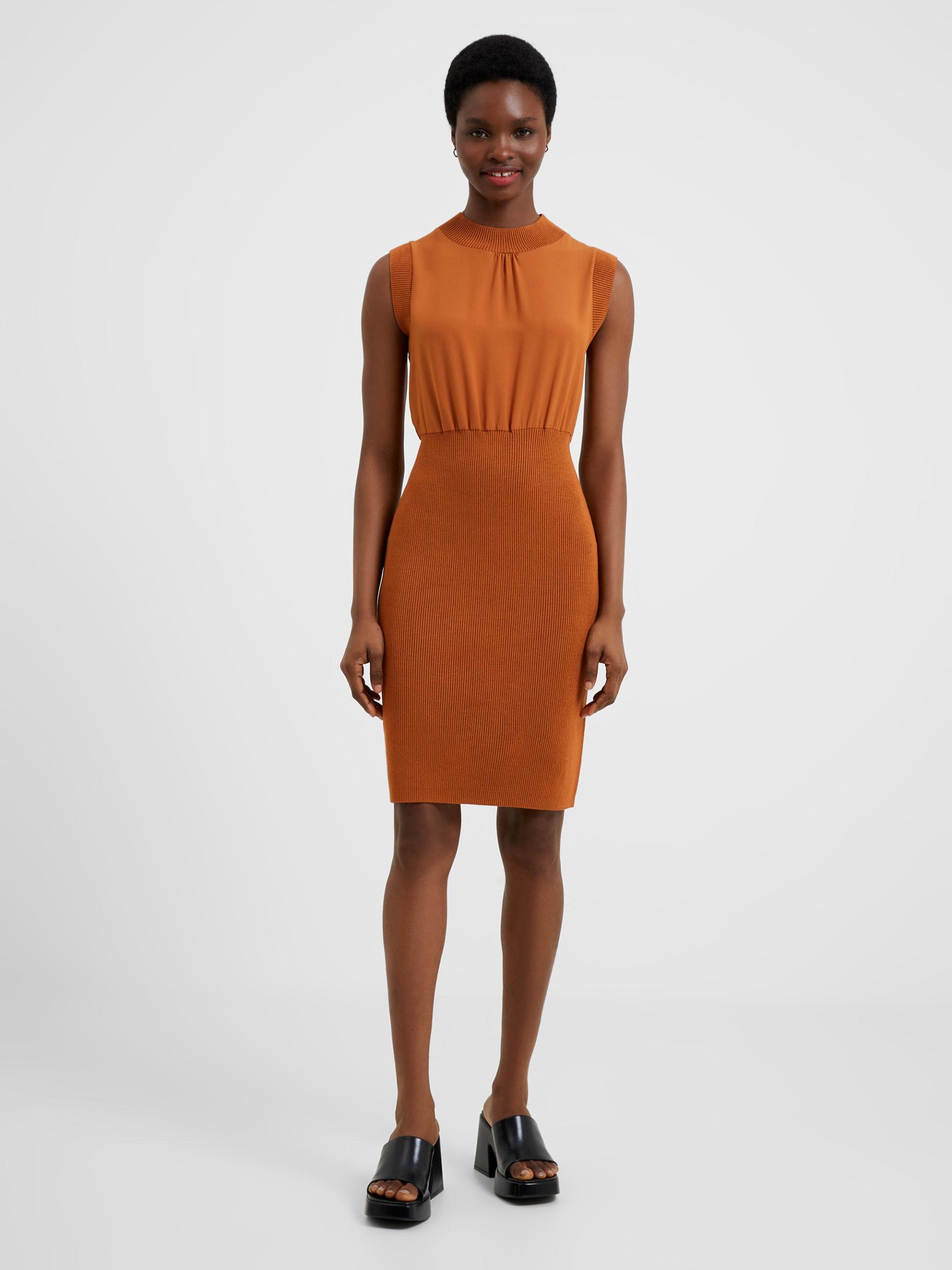 Krista Knit Sleeveless Rib Mix Dress Honey Bronze French Connection £19.00 -
