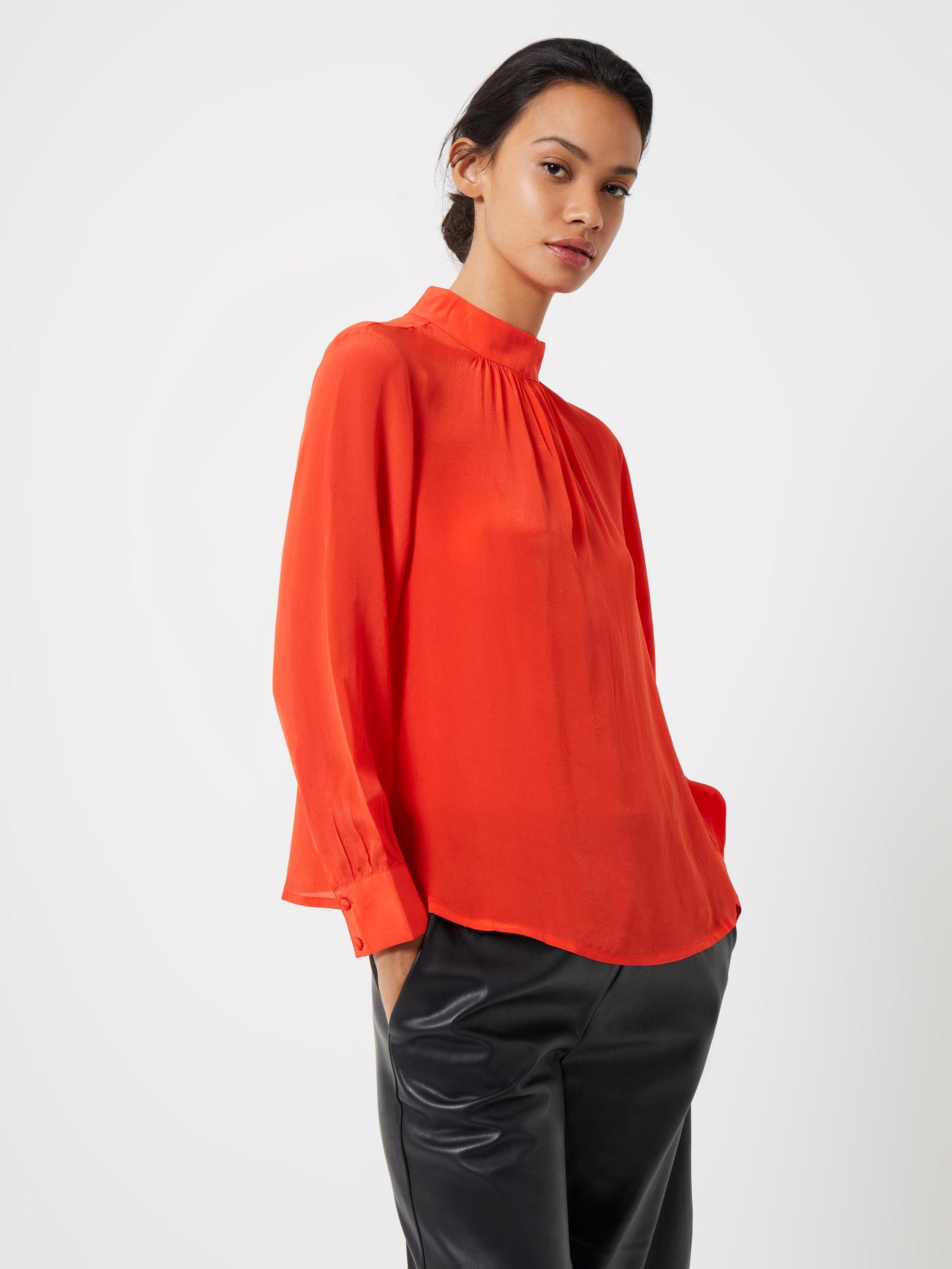 Cele Recycled Crepe Light Popover Shirt Mandarin Orange French Connection £15.00 -