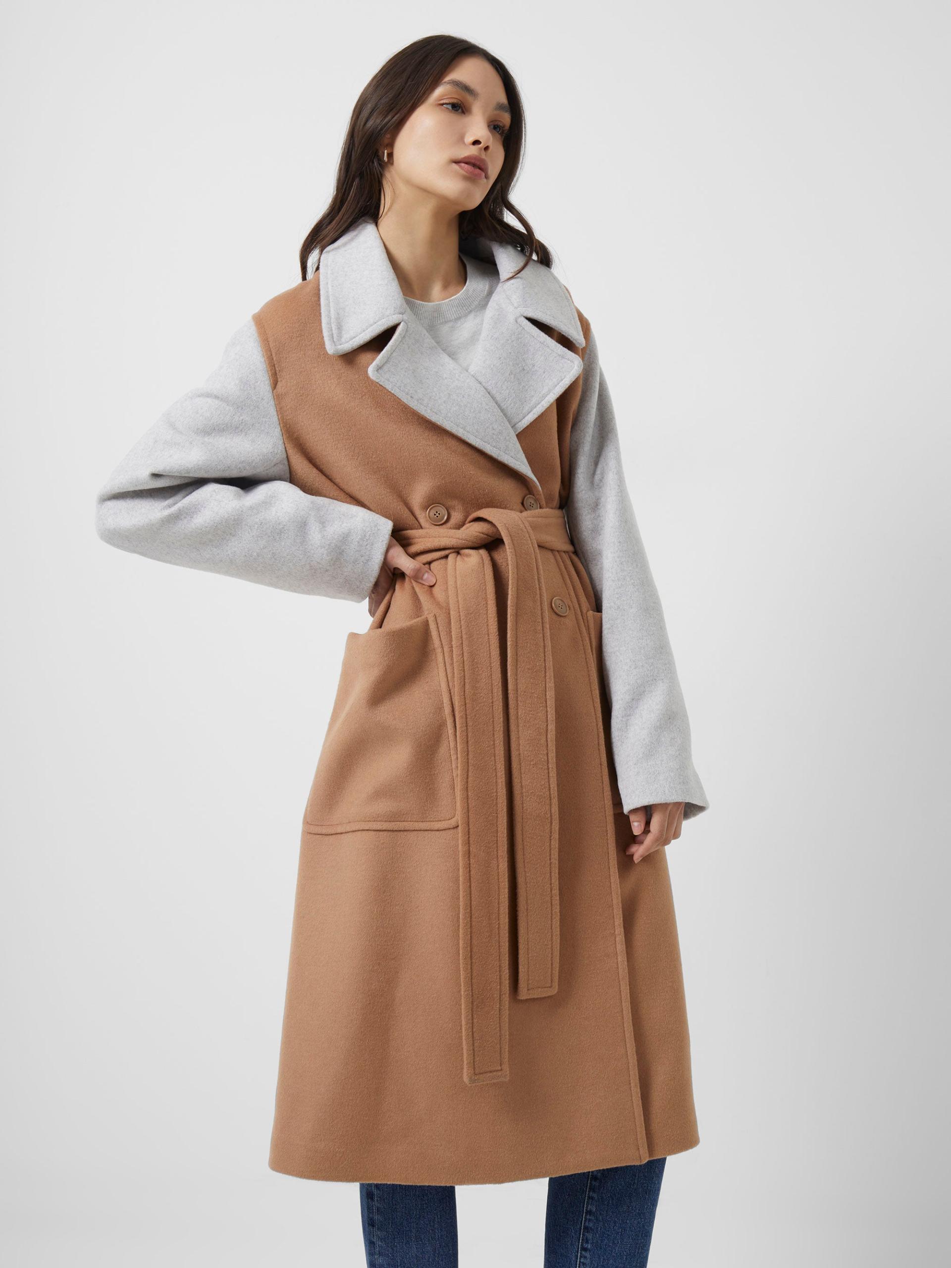 Arli Favan Felt Colourblock Midi Coat Dove Grey Mel/Camel French Connection £136.00 -
