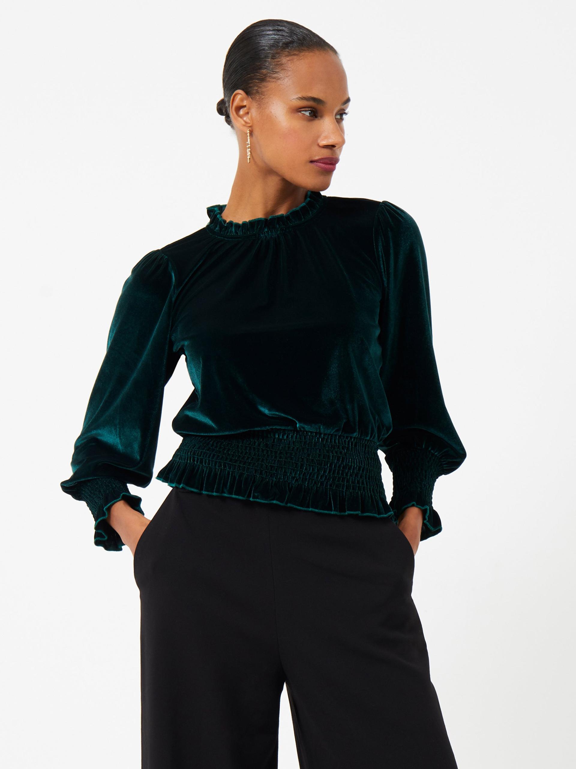 Sula Velvet Jersey Smocked Top Dark Green French Connection £32.00 -