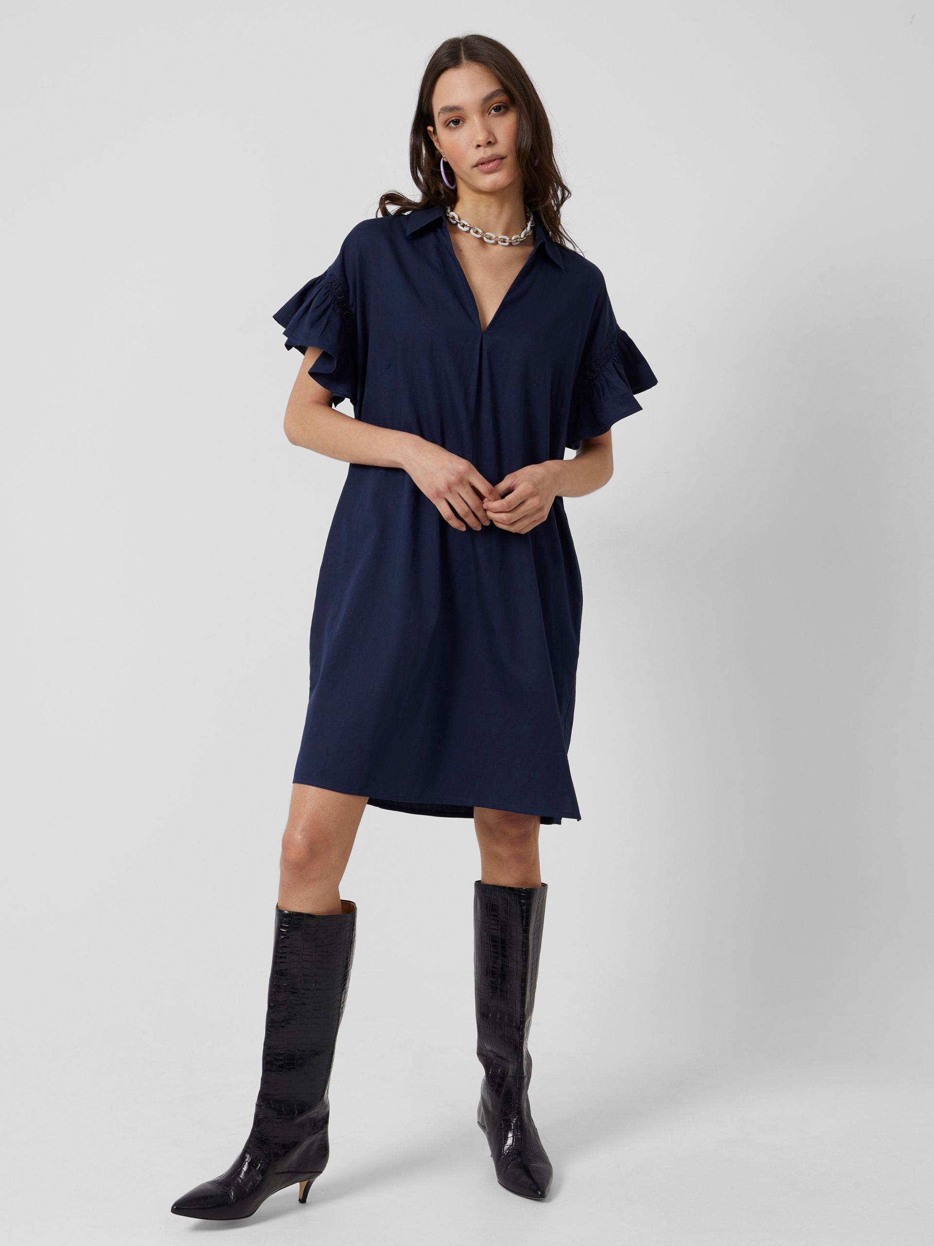 Sindey Cotton Satin Ruffle Sleeve Dress Indigo French Connection £29.00