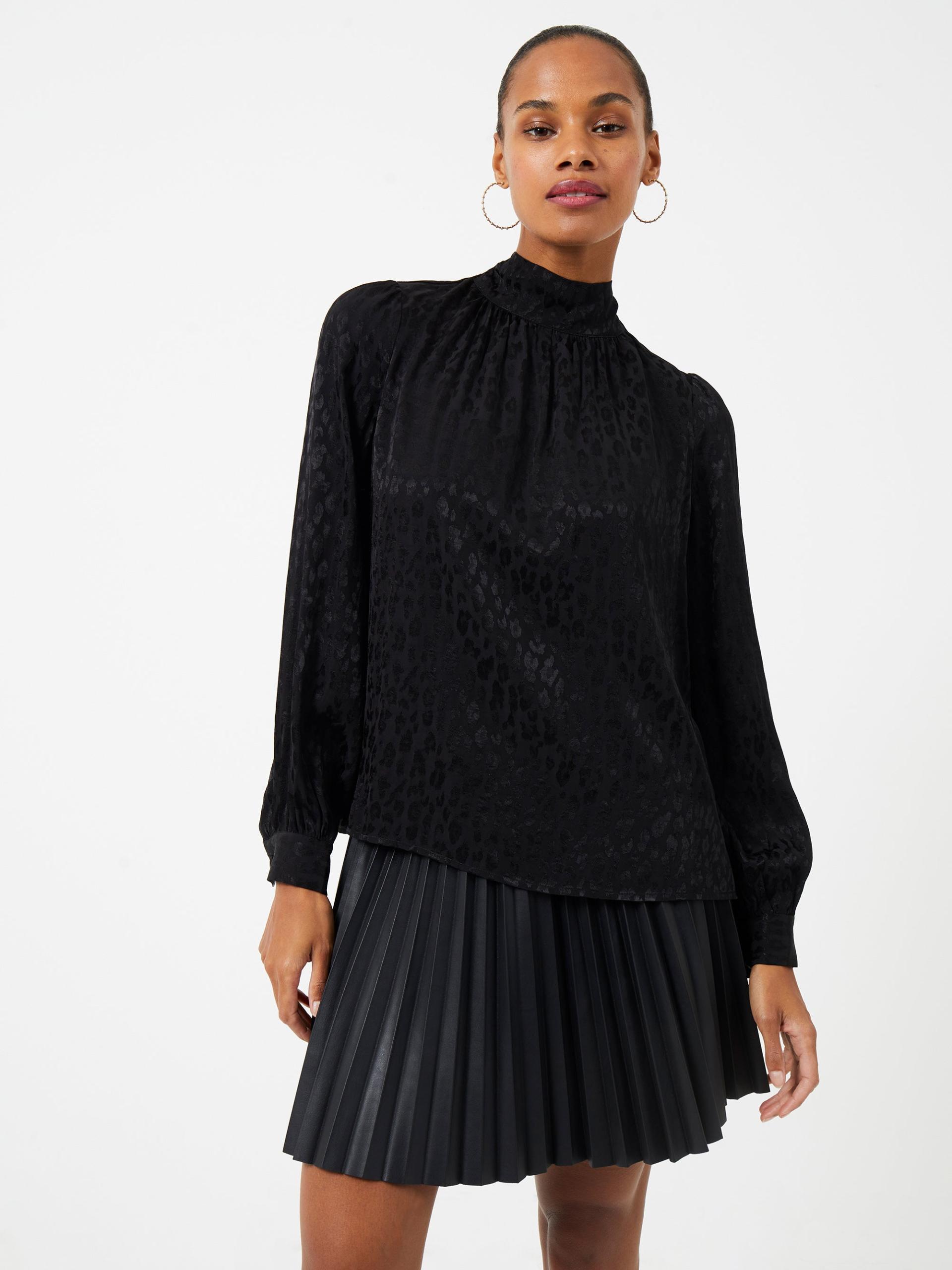 Caria Leopard Jacquard Button Neck Top Black French Connection £34.00 -