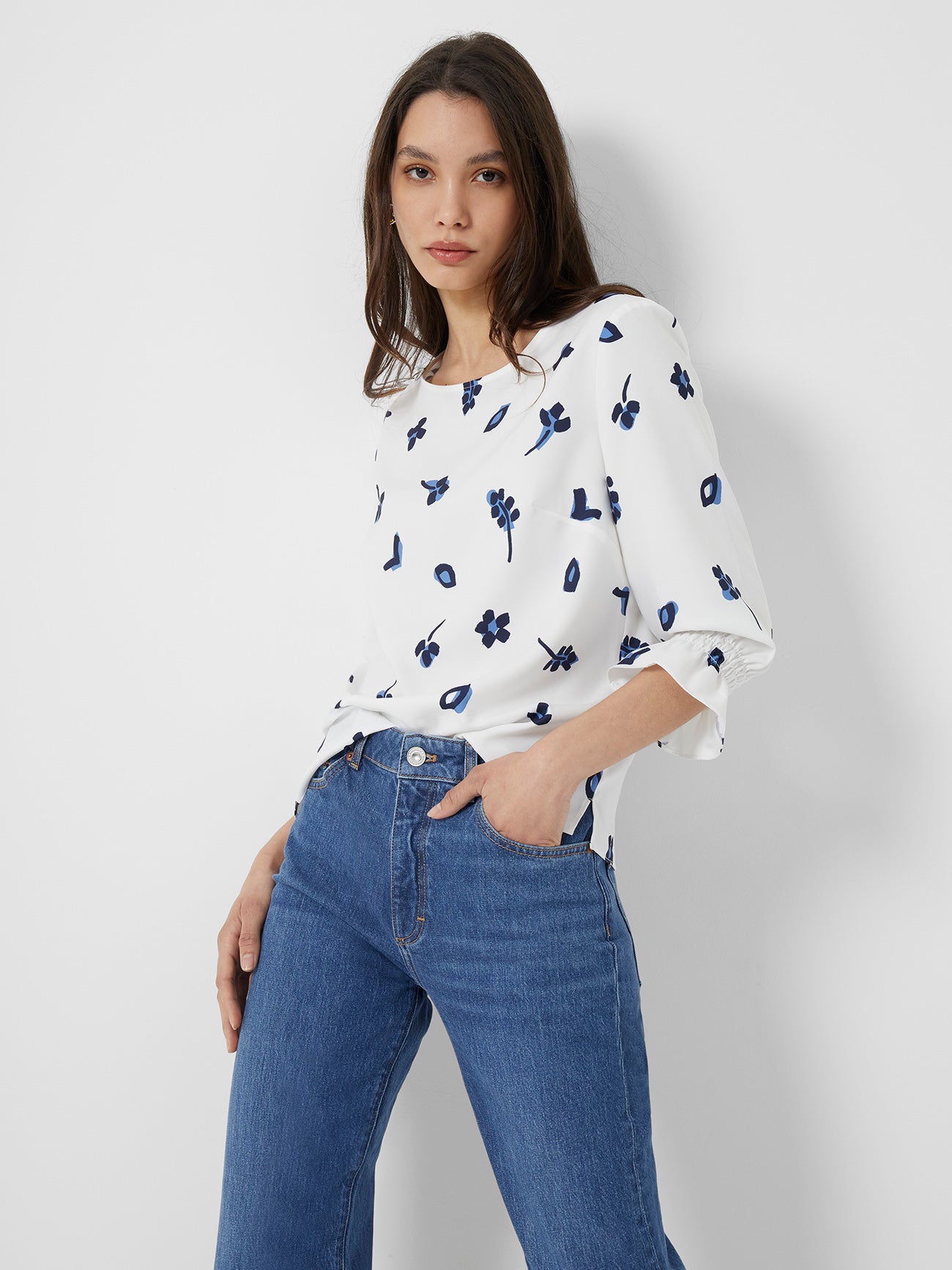 Bhelle Crepe Light 3/4 Sleeve Top Winter White Multi French Connection £34.00 -