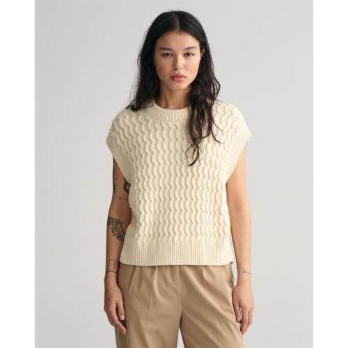 Cotton Cable Knit Jumper with Crew Neck and Short Sleeves Gant £93.75 -