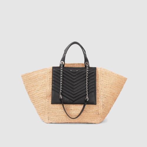 1440 Raffia Basket Bag with Quilted Leather Pocket Ikks £240.00 -