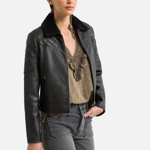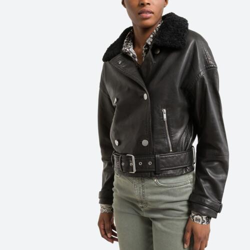 Leather Short Jacket with Faux Fur Collar Ikks £326.00 -
