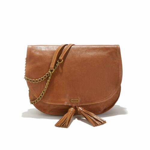 The Plum Leather Half Moon Bag with Flap and Gold Chain Shoulder Strap Ikks £220.00 -