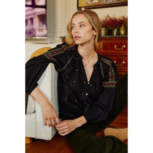 Sloane Cotton Embroidered Blouse with V-Neck and Long Sleeves La Petite Etoile £75.00 -