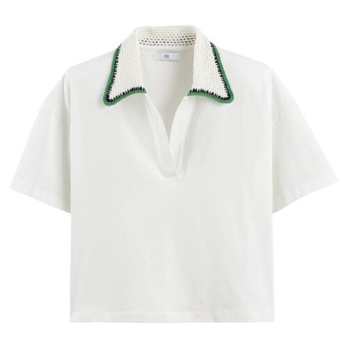 Cotton Polo Shirt with Crochet Collar La Redoute Collections £27.30 -